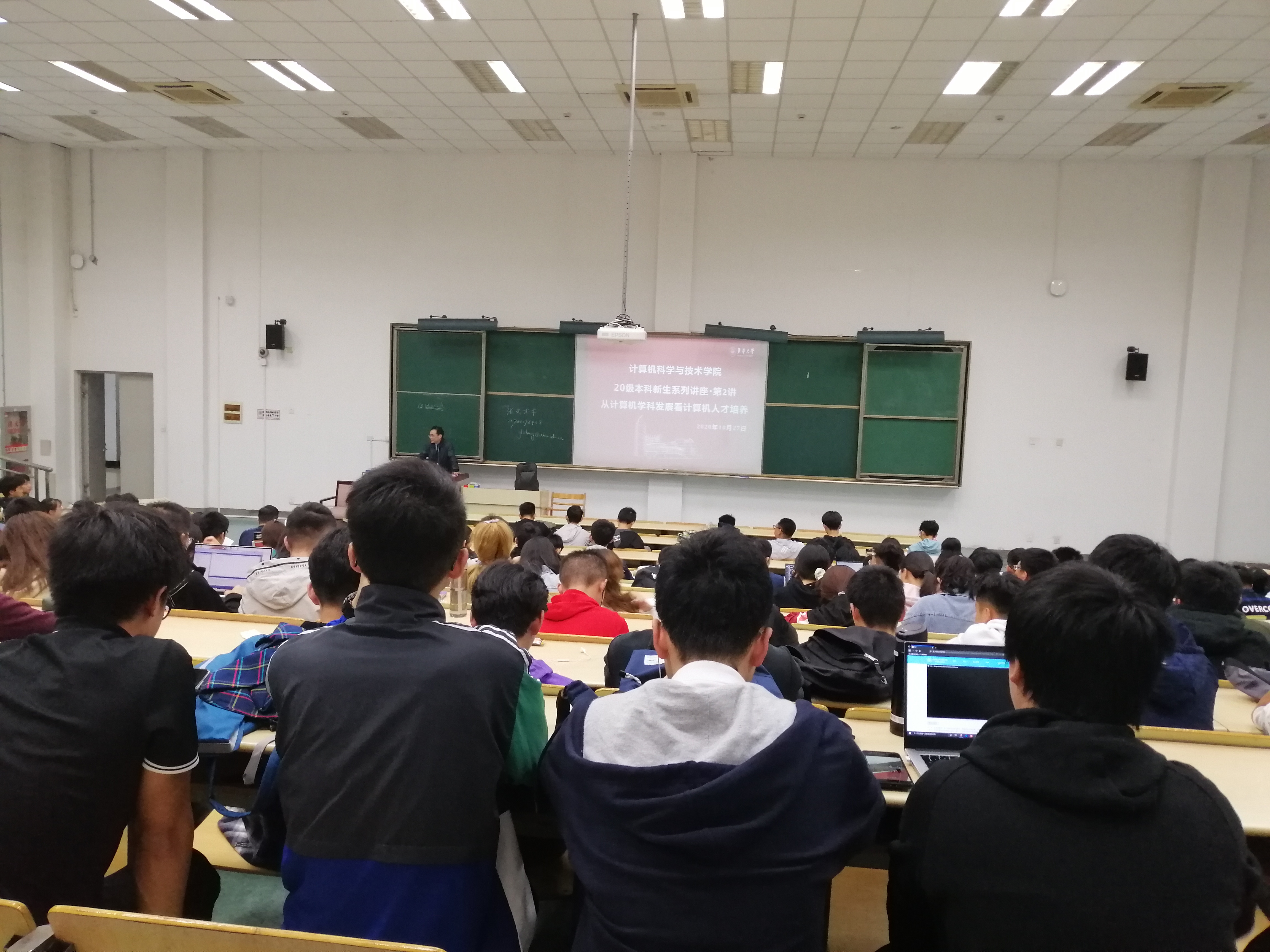 2020年10月27日下午17点整,计算机科学与技术学院于松江校区第一教学楼1137室开展了20级本科新生系列讲座·第2讲:从计算机学科发展看计算机人才培养。参与此次讲座的有星空体育中国官方网站副院长李锋、学院党委副书记李华婷,第二学士学位辅导员黄利利、20级本科新生辅导员姜霖霖和张莉萍,计算机学院20级全体本科及第二学士学位新生到场聆听。此外,此次讲座还在腾讯会议端开设了线上参会通道以邀请学生家长共同参会,参与到此次线上会议的学生家长近百人。