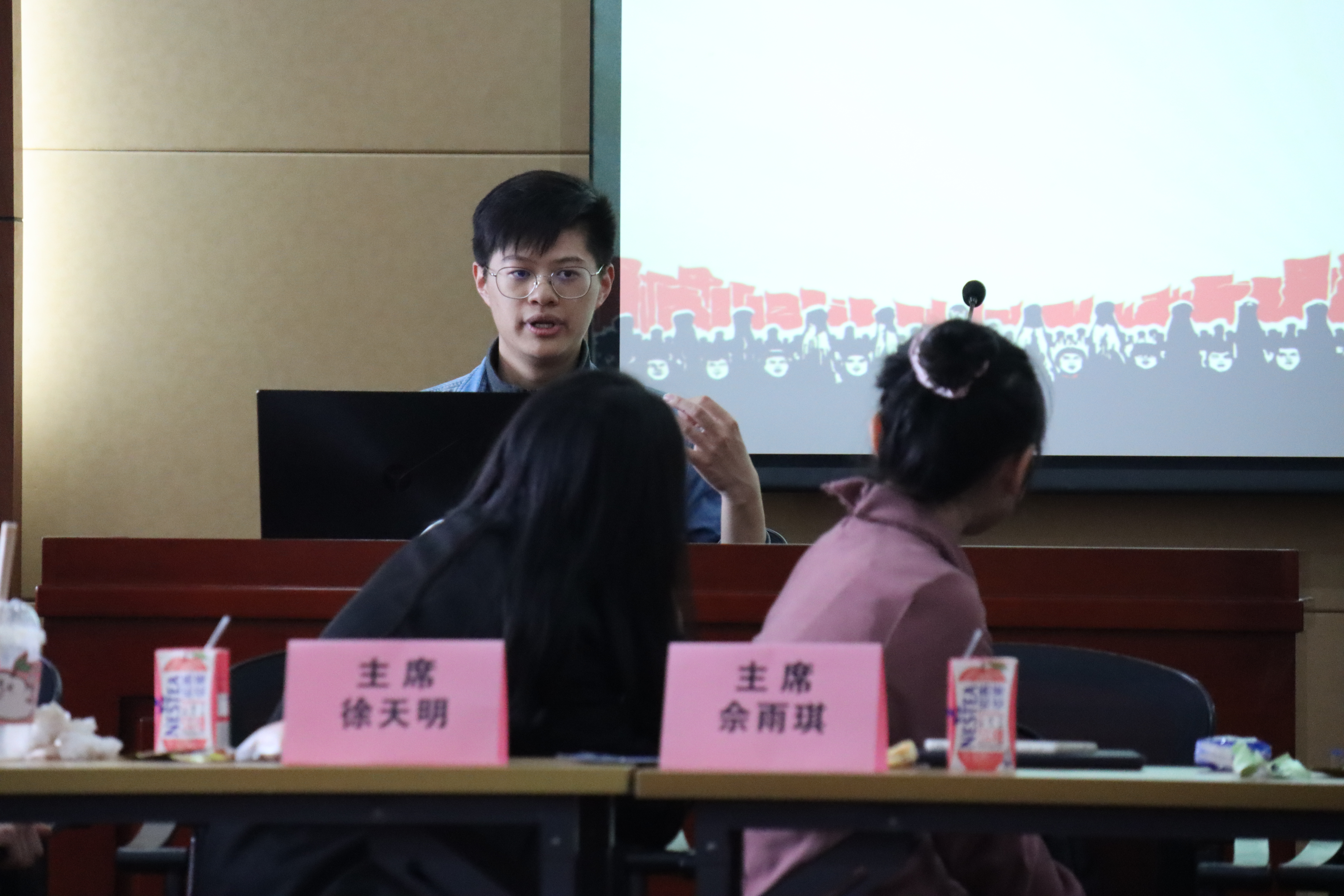 然后由上海大学计算机工程与科学学院学生会主席佘雨琪介绍上海大学计算机学生会构成并进行相应时期计算机学生会工作报告,解答由东华大学方提出的问题。