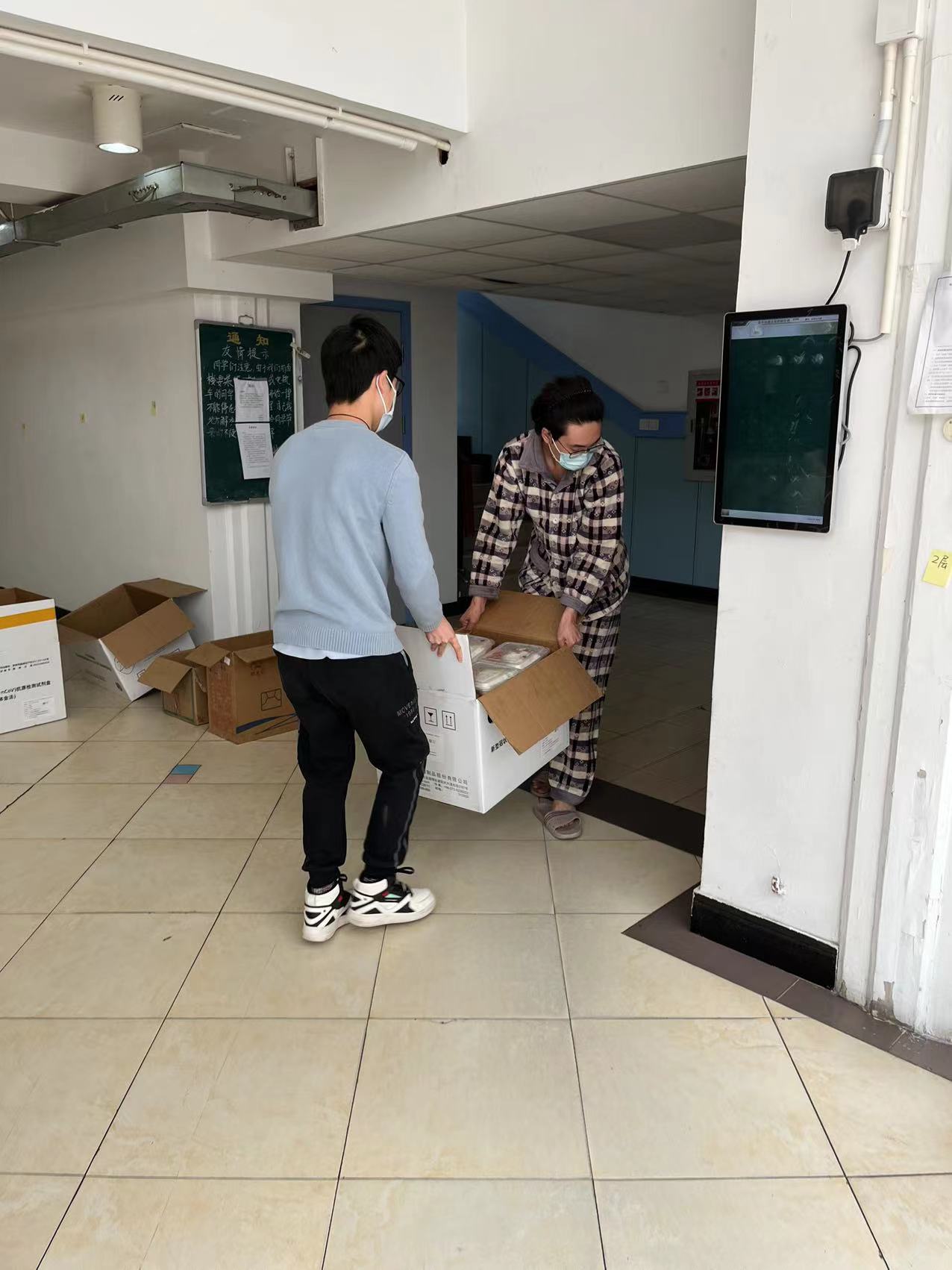 期间,我们将学校传达的信息具体通知到个人,还和各位志愿者发放各种防疫物资、生活物资。
