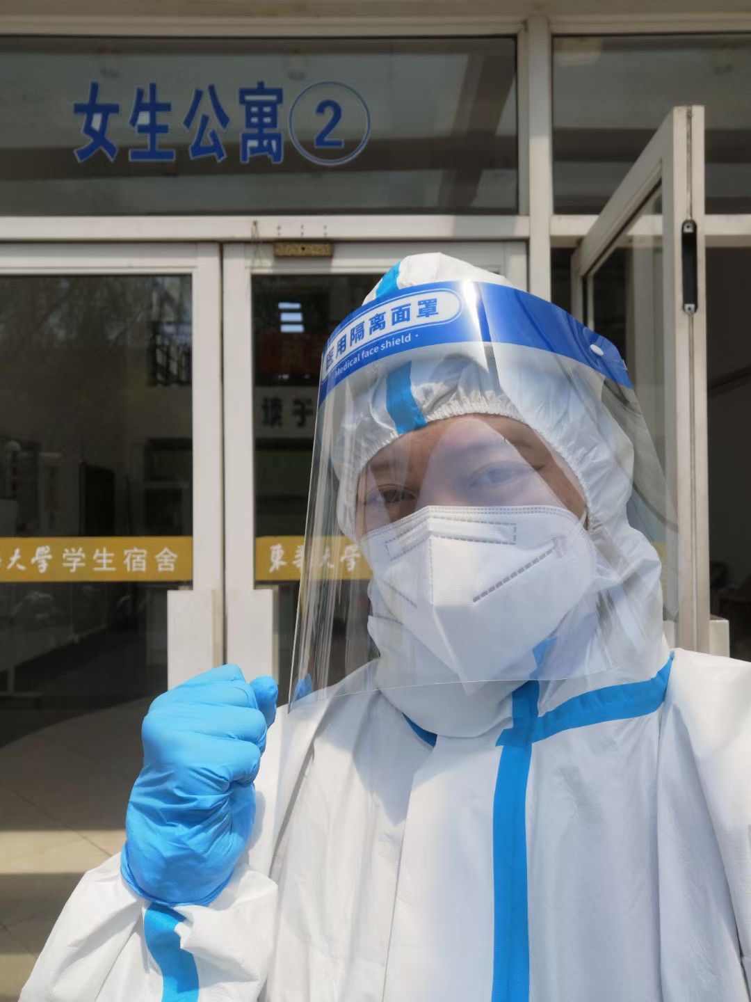 4月15日,唐菲菲老师接到要去重点楼栋担任驻楼辅导员的紧急任务。关键时刻冲得上去、危难关头豁得出来,唐老师是这样说的:“作为辅导员,我必须要暂时忘却长期值班的疲惫,心中一切的顾虑,到学生最需要的地方去!穿好防护服,跨过2号楼警戒线的那一刻,我深知身上的重任和使命,有“战”必应,这对我来说是一场必须要打赢的战役。”