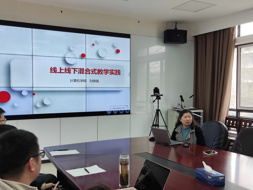 会议上,作为国家级一流本科课程《信息系统与数据库技术》的负责人,刘晓强老师围绕课程建设首先做了分享。刘老师谈到,教学其实是安生之本,科研是锦上添花,一个教师想让自己孩子遇到什么样的教师,自己就努力成为什么样的教师。然后,刘老师从自身教学工作体会出发,分享了自己如何开展线上线下混合式教学。刘晓强老师在课程建设和教学中的宝贵经验和感悟深深吸引着参会的青年教师,引起了大家的共鸣。