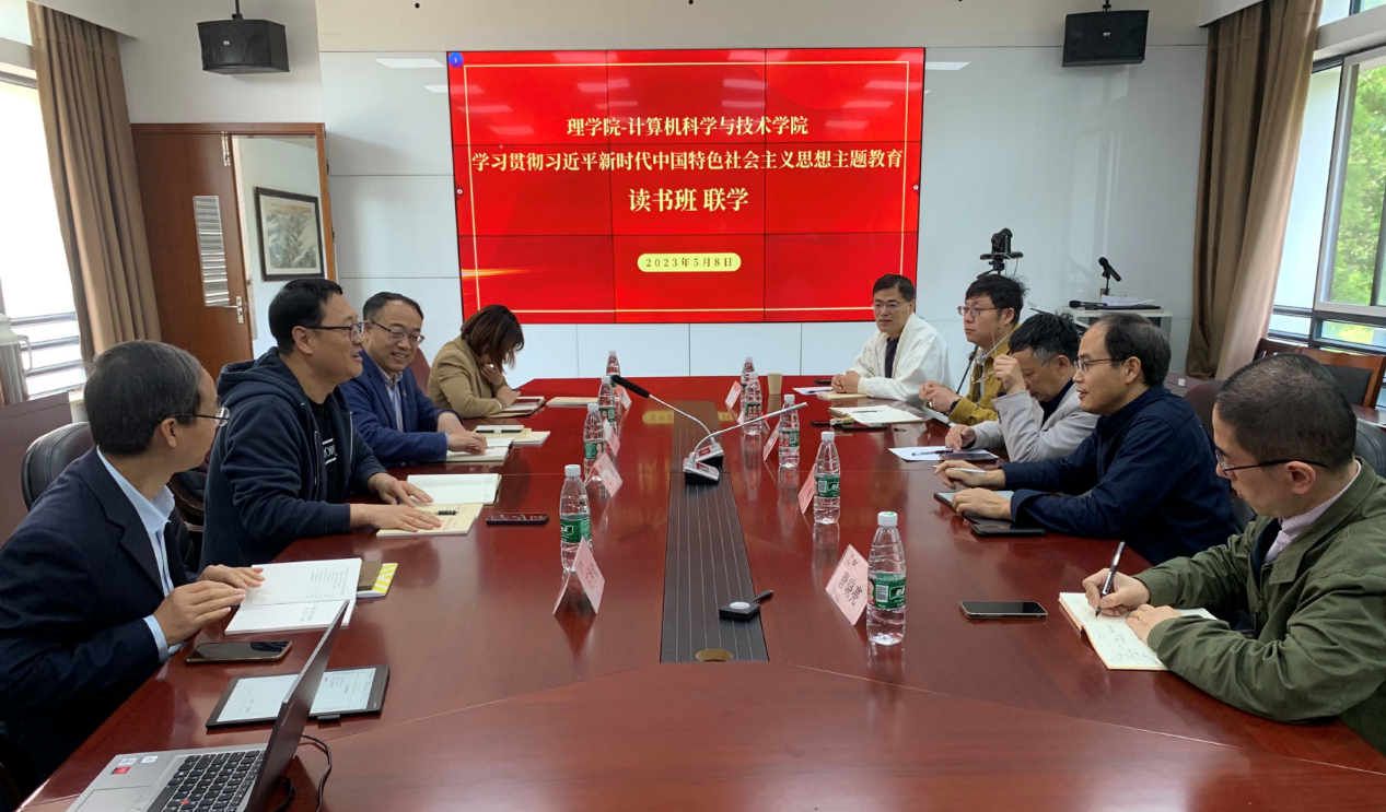 5月8日,计算机科学与技术学院领导班子与理学院领导班子开展主题教育读书班联学,邀请马克思主义学院陈向义教授以“学习习近平新时代中国特色社会主义思想的世界观和方法论”为题辅导学习《习近平新时代中国特色社会主义思想的世界观和方法论专题摘编》(以下简称《专题摘编》)。理学院党委副书记(主持工作)、副院长谢峰,副书记王乔松,副院长胡良剑,副院长唐晓亮;计算机科学与技术学院党委副书记(主持工作)、副院长杜明,院长方志军,副书记李华婷,副院长石秀金,副院长常姗参加学习,杜明主持学习会。