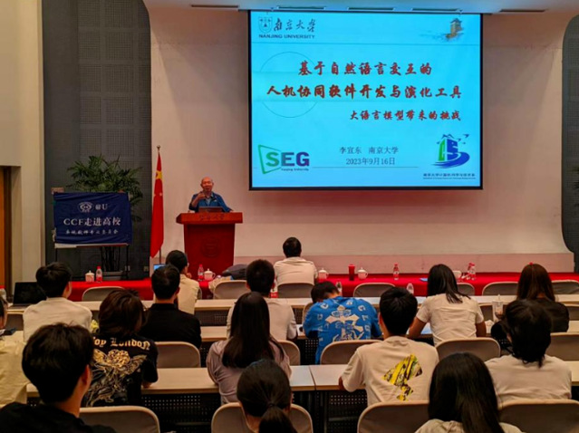 李宣东老师的报告“大语言模型:基于自然语言交互的人机协同软件开发与演化工具带来的挑战”主要阐述了大语言模型作为一种软件工具在人机协同的软件开发和演化工作环境中给人提供帮助的同时也带来了诸多的挑战。大语言模型并没有改变人在软件开发与演化中的主导地位,软件开发与演化人员不仅要能够有效引导大模型生成对软件开发与演化更有帮助的预测性内容,而且要能够正确分析、理解和确认大模型生成的预测性内容并在此基础上完成有可信保障的决策性任务、进而开发和演化高质量的软件系统。