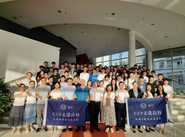 2023年9月16日下午,应东华大学计算机学院邀请,中国计算机学会(CCF)软件工程专委会与系统软件专委会联合举办了专委走进高校活动。在本次活动中,多位国内软件领域的杰出学者与东华大学计算机学院的师生,共同探讨了软件工程与系统软件领域的前沿课题,展望了未来的发展方向。本次活动邀请到了四位专家进行技术报告,他们是CCF系统软件专委会主任、北京大学计算机学院教授金芝,CCF软件工程专委会主任、南京大学计算机科学与技术系教授李宣东,CCF软件工程专委会副主任、复旦大学计算机科学技术学院副院长及教授彭鑫,以及南京大学计算机科学与技术系副主任及教授马晓星。与会人员包括东华大学计算机学院院长方志军、书记杜明、副院长石秀金、副院长常姗,以及百余名学院教师及学生。东华大学计算机学院院长方志军教授,首先代表学院热烈欢迎出席本次活动各位专家,特别强调本次活动对加强东华大学与CCF的合作以及引导本院师生面向计算机及软件技术前沿确立科研方向都具有重要的作用。会议的报告环节由常姗教授主持。马晓星老师的报告“人机物融合软件及其不确定性应对”探讨了人机物融合软件及其应对不确定性的重要性。他强调了人、机、物融合趋势,包括数字化、信息化、智能化和超级自动化的发展,以及这种趋势带来的社会信息空间与物理世界的融合。马老师以软件定义一切的概念为例,说明了软件在现代汽车制造中的关键作用,并强调了软件构造方法的变革。报告还提到,随着人机物融合的发展,软件的角色已经从信息处理演变为应用价值观的主要驱动力,管理系统复杂性成为核心任务。马老师解释了软件的独特性,包括其逻辑性、灵活性以及对复杂性的管理能力。他指出,软件能够克服物理限制,支持自由的复用和组合,从而在处理系统复杂性方面具有优势。最后,他强调了传统软件工程方法与深度学习、自动控制等方法之间的差异,以及如何在人机物融合系统中容忍和应对各种不确定性。