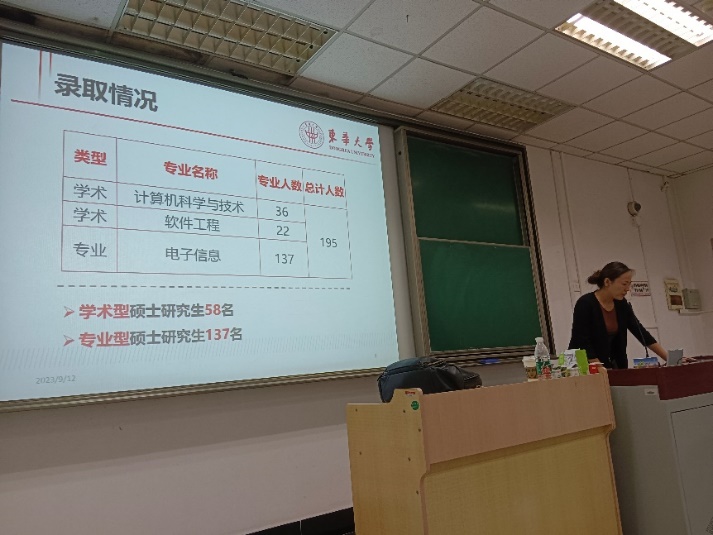 计算机科学与技术学院举行2023级新生迎新大会,院长方志军、副院长石秀金、学科规划与发展事务中心主任王洪亚、产学研协同创新中心主任王鹏伟、信息系主任宋晖、应用系主任燕彩蓉、软件系主任卢婷、实验室主任李悦、2023级新生班导师和辅导员等一同出席,会议由学院党委副书记李华婷主持。方志军院长致辞欢迎新生的到来,并从学院文化、学科专业、师资力量以及培养方式等多个角度对学院进行了详细的讲解,勉励新生在东华大学健康成长,成为德智体美劳全面发展的社会主义建设者和接班人。