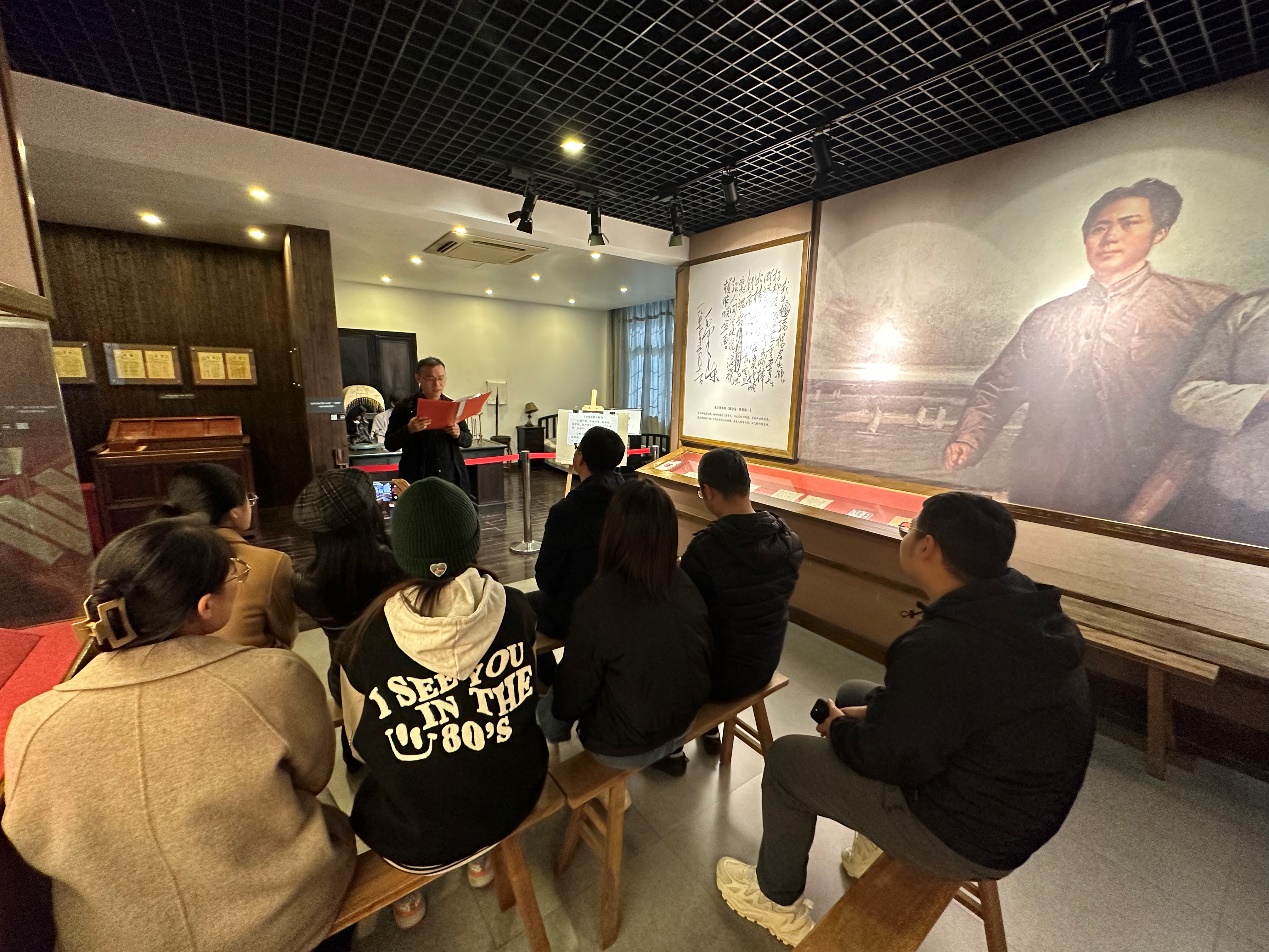 为深入学习贯彻习近平新时代中国特色社会主义思想,全面贯彻党的二十大精神,增强教师思想政治工作的针对性和实效性,11月17日,学院党委开展2023年国情研修暨新入职教师培训,组织新入职教师和党委会扩大会议成员赴中共三大后中央局机关历史纪念馆参观,并沉浸式体验了一堂别开生面的情景党课。