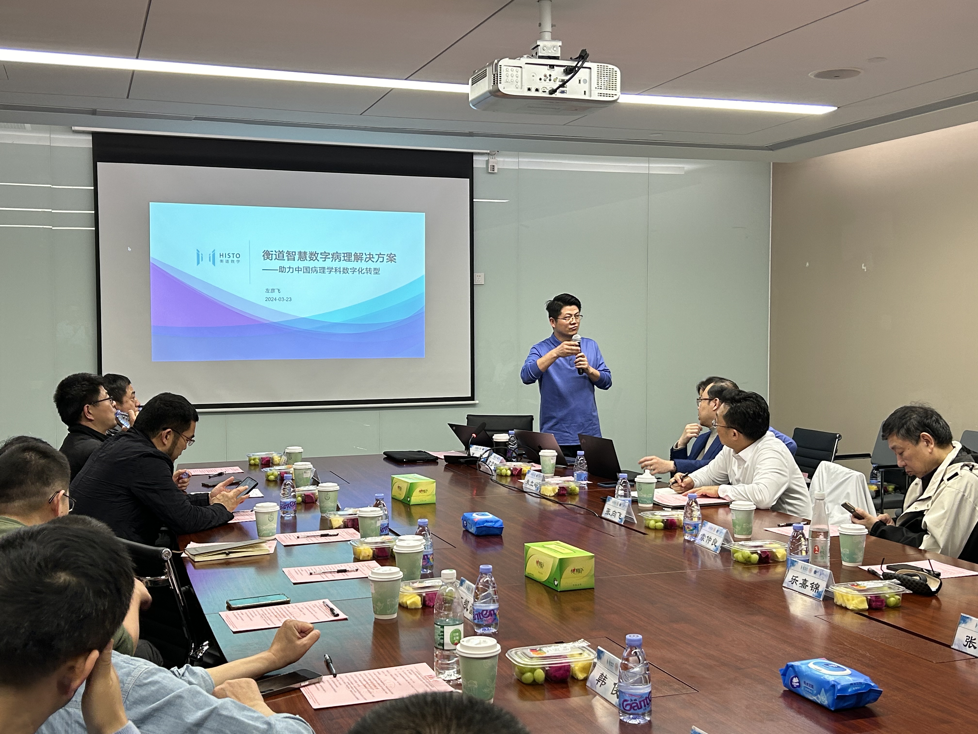 学院校友会副秘书长周颖介绍嘉宾和校友互相认识后,学院校友会名誉理事,本次活动轮值会长,衡道医学创始人张洋总裁致词欢迎各位嘉宾和校友参会。与会人员听取了上海计算机开放系统协会2024年活动规划(陈德华)、学院校友会2024年活动规划(陶然),20年的轮回——从数字放射到数字病理(瑞金医院 朱立峰)、衡道病理智慧医疗解决方案(衡道数字 左彦飞)、细胞分化在抗衰老领域的应用(北陆医药 张玉辉),然后围绕“智慧医疗”“大数据”“大模型”等前沿课题与应用场景进行了交流。