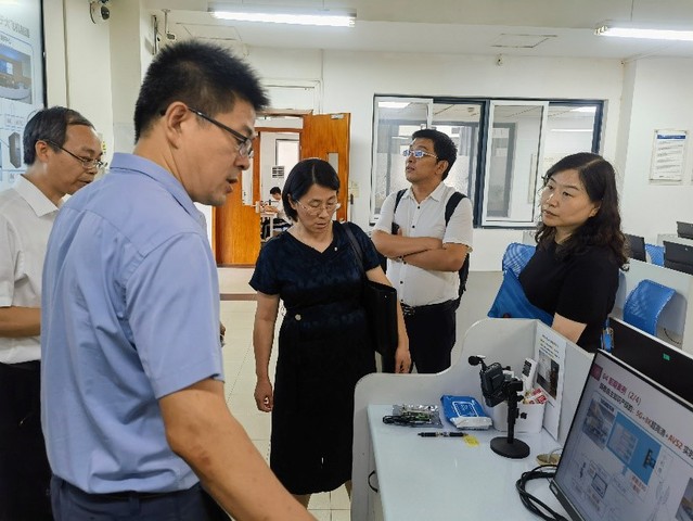 接着,专家组对示范中心的综合创新实验室、服务器机房和校企联合实验室进行了考察。在综合创新实验室,专家们与机器人NAO进行了趣味互动,对无人机和智能小车等创新实验项目的开展情况进行了深入了解。在服务器机房,专家们对机房的建设规模、运维管理及未来发展规划给予了充分肯定,并就如何进一步提升实验教学资源的使用效率和管理水平提出了宝贵建议。