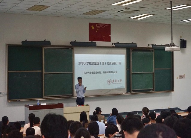 国际合作处副处长杨升元就学校国际合作处相关工作情况、学校留学合作交流工作的发展做了详细介绍。他指出,东华大学与国外多所世界前列的高校一直以来都有着深入的学生交流合作并不断推进交流的多样化。他鼓励同学们参与到更多交流项目中去了解海外院校学习环境、丰富自身教育经历并逐步提升跨文化交流能力及创新能力。