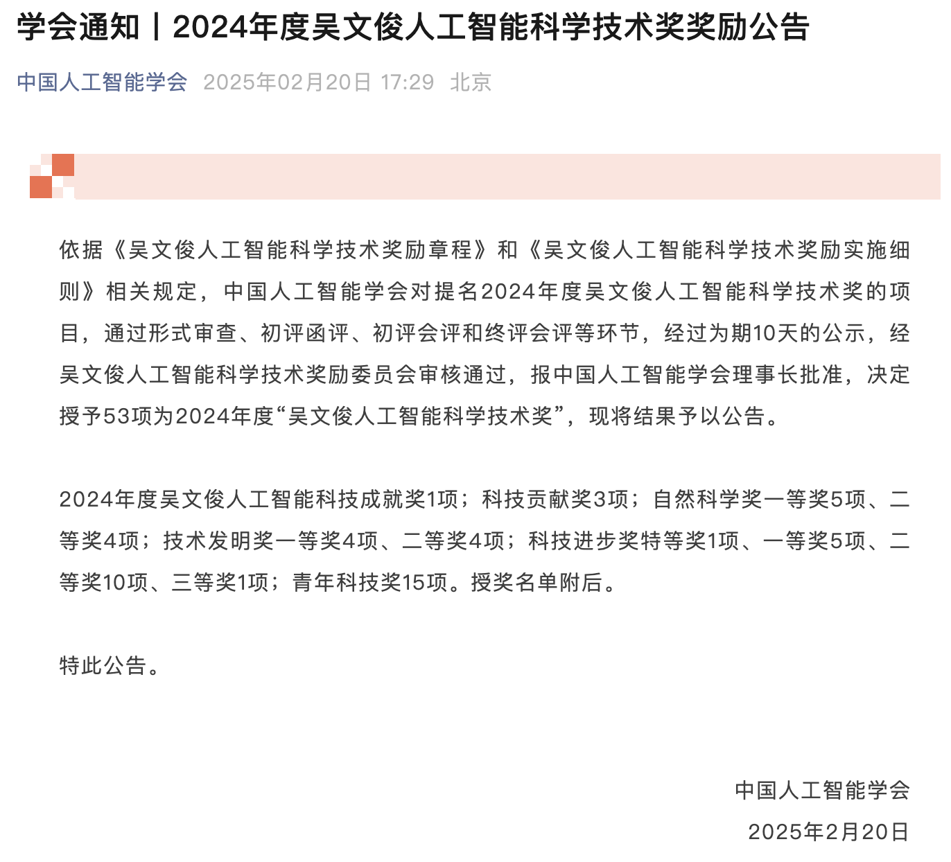 近日,中国人工智能学会公布2024年度“吴文俊人工智能科学技术奖”获奖名单,我院王鹏伟副教授参与申报的“服务驱动的工业PaaS云平台智能协同关键技术及其应用”荣获科技进步一等奖。