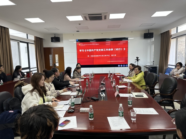 在政策培训环节,第一实验室基地学生党支部书记董文清和第一校外实习基地学生党支部书记王欣钰分别对《中国共产党支部工作条例(试行)》和《中国共产党党员教育管理工作条例》进行了深入解读。两位主讲人详细讲解了条例的核心内容和实施要点,帮助与会的支部基层党务工作者深入理解和掌握开展支部工作的两项基本遵循。在实务指导环节,东华大学特邀党建组织员卫玲琍老师围绕支部组织生活和发展党员工作中的注意事项,结合具体工作案例,进行了细致的讲解和指导。在近期工作交流环节,与会师生党支部支委会成员就支部工作中遇到的困难、困惑及年度工作打算进行了交流,互学互鉴,共同提高。