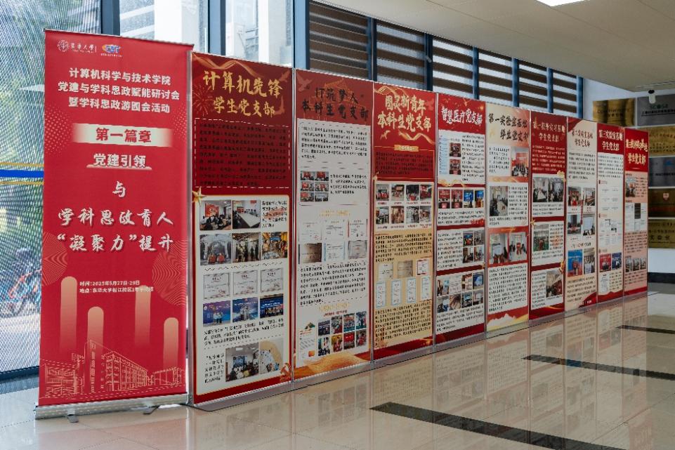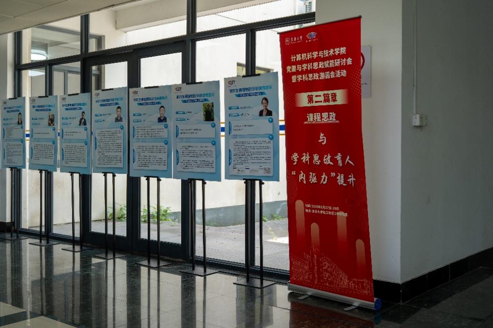 2025 年5 月27 日至29 日,星空体育中国官方网站在松江校区1 号学院楼举办"党建与学科思政赋能研讨会暨学科思政游园会",本次活动邀请了研究生院、教务处、学生处就业办相关领导老师前来参观展览,学院师生100余人参与游园会,以"科技蓝+ 党建红" 为底色,通过五大维度主线活动探索思政教育与计算机学科深度融合的育人新范式。