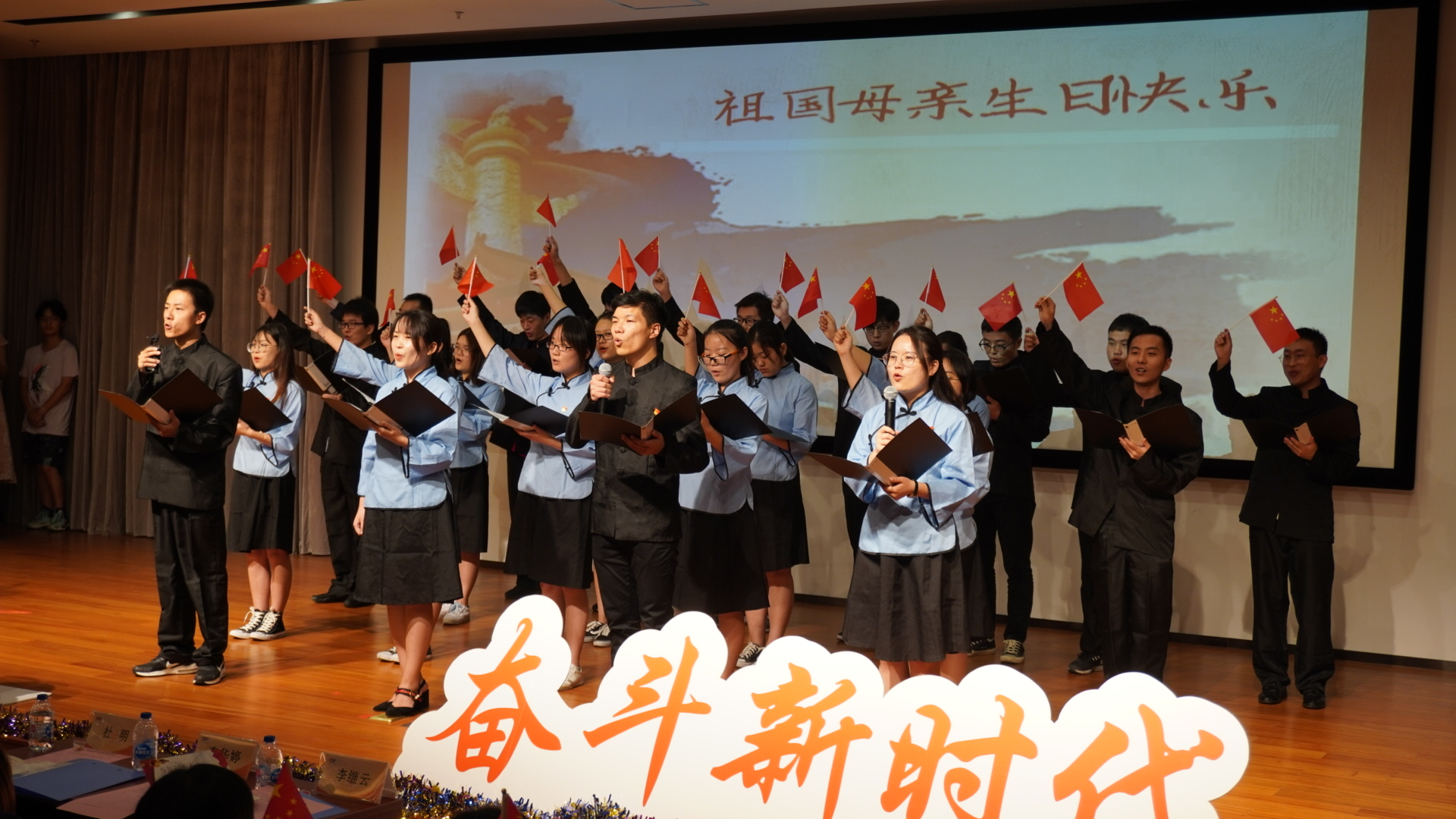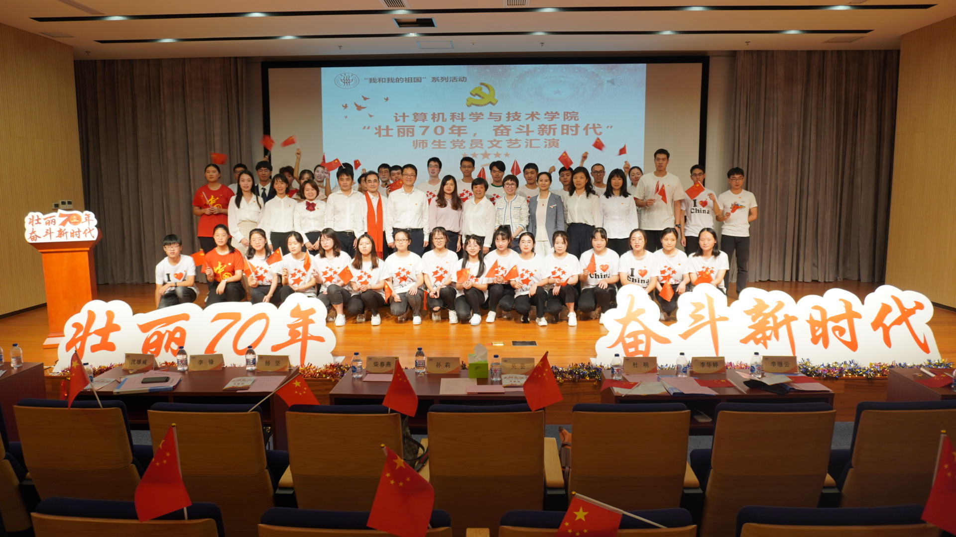 924日,新中国即将迎来成立70周年之际,计算机学院举行“我和我的祖国”系列活动之“壮丽70年,奋斗新时代”师生党员文艺汇演,全院师生党员及学生代表以合唱、舞蹈、朗诵、情景剧等形式讴歌祖国,充分展现70年来特别是党的十八大以来的历史性变革和成就,营造浓厚庆祝氛围。本次汇演邀请学院党建共建单位松江区人才服务中心副主任柴春燕,星辰园居委会委员吴芸参加,计算机学院全体党政班子成员以及全体师生党员和部分学生代表出席活动。
