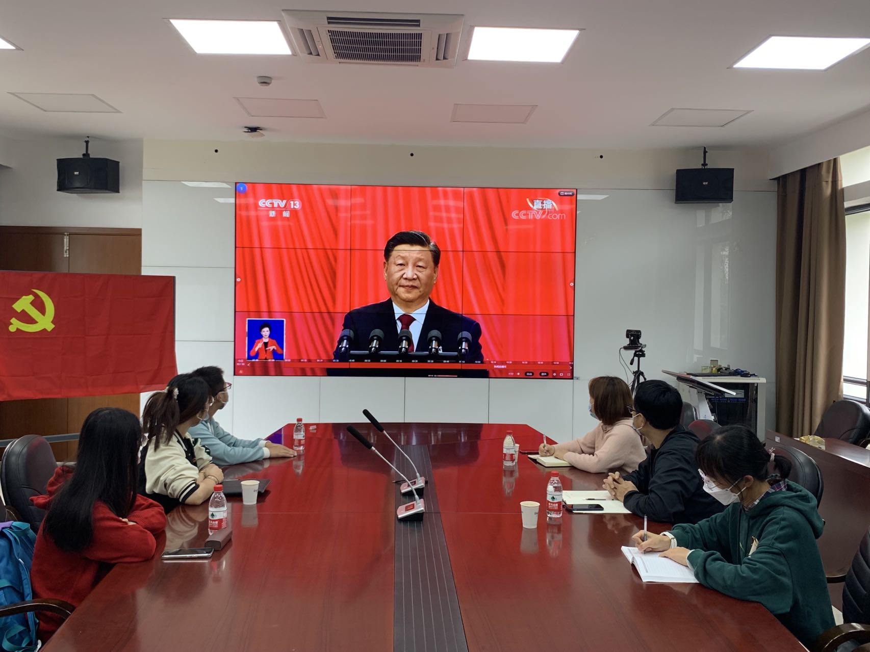 计算机科学与技术学院组织师生代表于学院楼240会议室集中收看党的二十大开幕会,各党团支部等也纷纷通过电视、广播、网络等多样化的方式组织师生进行收看收听,学院广大师生对党的二十大胜利召开倍感欢欣鼓舞,认真学习党的二十大报告并展开了热烈讨论。
