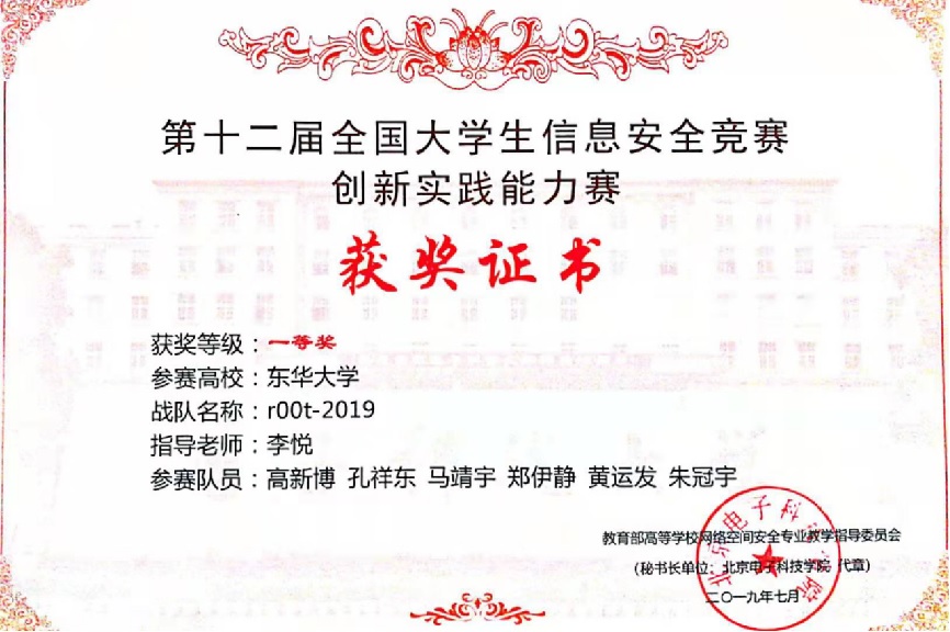 2019年,战队再创辉煌,在全国大学生信息安全竞赛华东赛区获得特等奖,并在全国赛中荣获一等奖,彰显了团队在国内信息安全领域的领先地位。